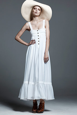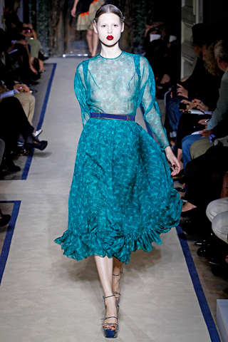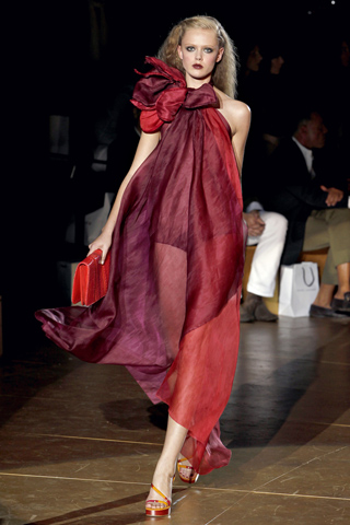 Chiffon is one of my most favorite fabrics. It is versatile. It’s soft and flowing. It moves wonderfully with the body. It will make you feel like a princess. It has made a gorgeous imprint on Spring/Summer 2011 RTW! Can you think of a sight more lovely than a bounty of airy fabrics billowing with the winds, obeying the tug and pull of the canvas, the body, that it’s on. This may be boring for boys, but it shouldn’t be! Think of the most beautiful girl you know looking the most beautiful in a beautiful dress! Or overuse of the word “beautiful”. Or think about wearing these gorgeous garments and frolicking in a garden somewhere. If there ever was a time convenient or appropriate enough to, you’d want to look the part.