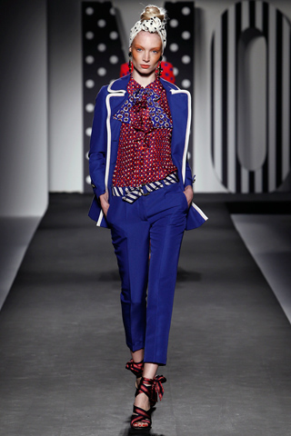Which is why I was ecstatic to see so much of this in the Moschino Spring 2011 RTW: The tailoring is immaculate. The whole theme is very patriotic, gallant and quite masculine. It’s over-the-top. I’m showing you the most subdued, wearable images.