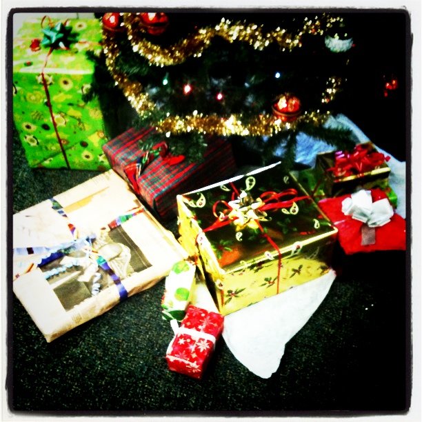 presents in a bundle at the base of the tree. Don’t they look nice?