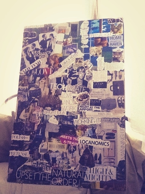 A huge minus with dream boards is that you, or, more appropriately, I, can only really use fashion magazines. You’re supposed to use phrases, words and images that ‘speak” to you, which I did. I do know that things like this are ridiculous, and if you do too, don’t harp on this. It’s just our logical minds interpreting what they see before us as a schizophrenic episode. What makes this okay is that it’s an exercise that allows us to use our feminine minds. It’s emotional. And sensory.