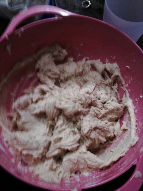 The result is a dough so sticky, I had to use a fork to scrape it off my hands. We made plaster masks in art class when I was a fifth grader. This dough felt like plaster. The ripples you see in the photo below are actually from the fork…