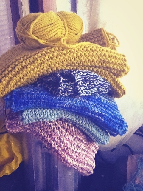 The answer to all scarf woes. It’s just a scarf that’s attached to itself making a knit donut. Seamless, easy wearability. First, let me show you all the scarves, I’ve made 8 total. 2 man scarves (one of these two is sort of effeminate), 5 lady scarves.