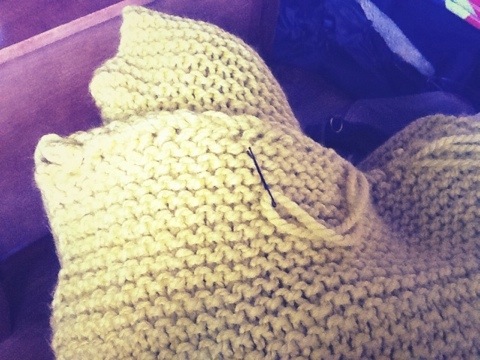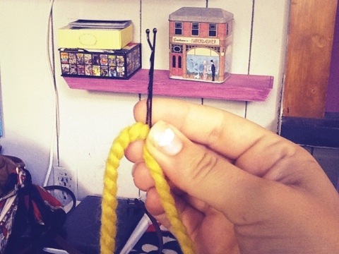 I consulted a professional about this, Jill, my friend, makes scarves far more frequently than I. Since I’m a novice. I asked about what I’d need to make an infinity scarf. I was instructed to get some sort of large crochet needle that will “thread” the yarn in order to simulate “sewing” the two ends together. I didn’t want to buy another tool, so, I used one Bobby pin instead, which seemed to work fine. Just make sure your yarn hangs tight.