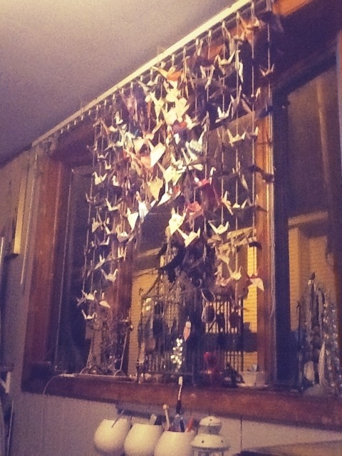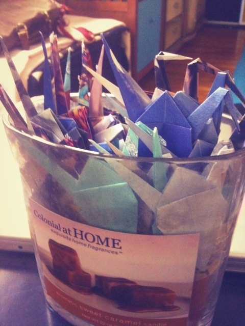 Yes, making 300 cranes out of magazine cutouts has been a laborious commitment. One that’s been increasingly difficult to maintain given recent work developments that have left me flinging from one geographical location to another. A nice break from routine, sure, but my labor of love has seen some compromise.